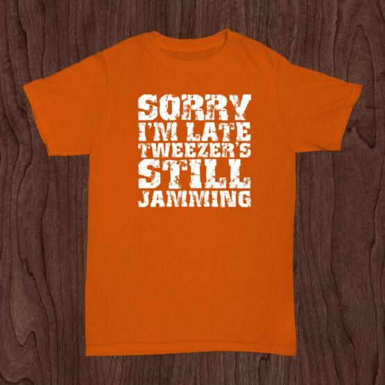 Grab your Phish Sorry I’m Late Tweezer’s Still Jamming vintage retro style Phish parking lot style shirt and stand out at any show or in the parking lot.